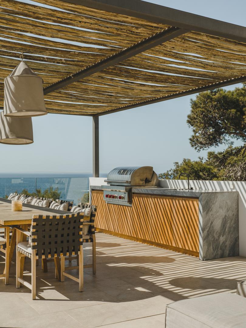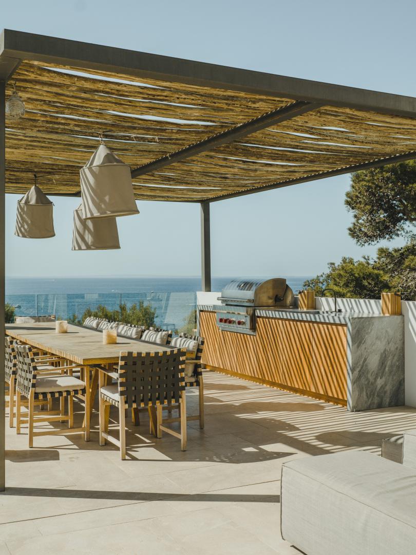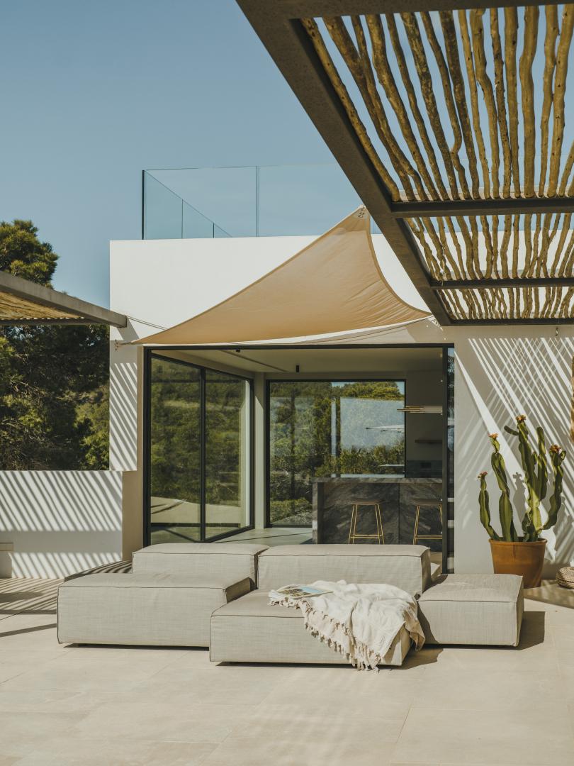 Protected within the secure Roca Llisa community, Villa Naomi is fully shielded from neighbouring properties and enjoys uninterrupted 180-degree sea views from all living areas and bedrooms. Pergolas, sun sails, and a large pool deck surround the swimming pool, offering multiple spaces for relaxation throughout the day.