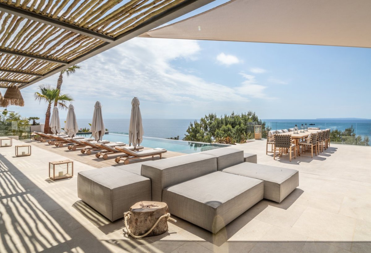 Facing the sea directly and enjoying ever-changing light from sunrise to sunset, the villa offers a rare blend of luxury, nature, and serenity. Direct sea access further enhances its exclusivity, making it one of the most desirable seafront villas for rent in Ibiza.